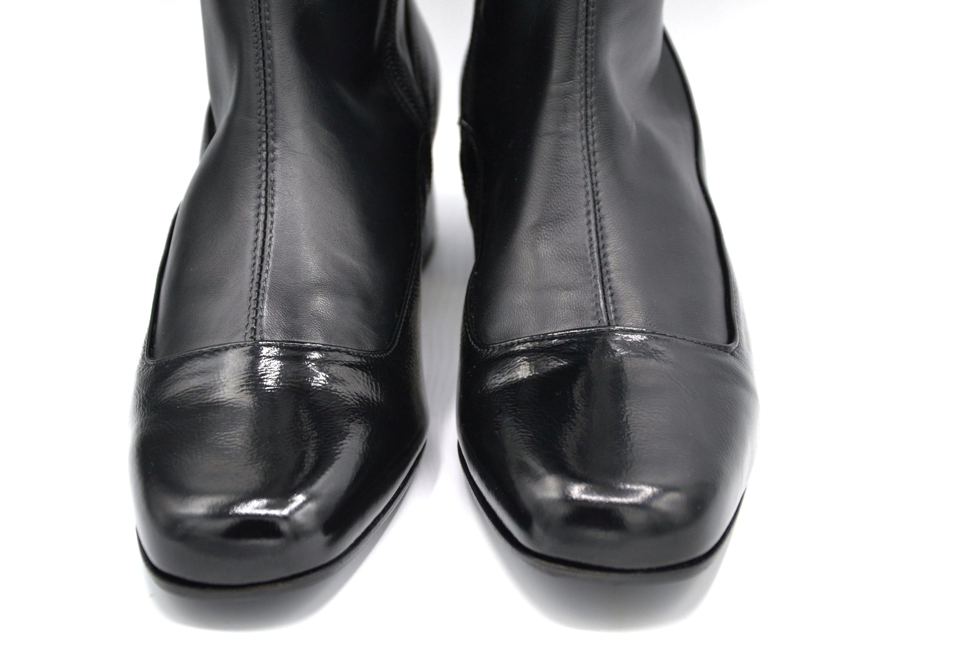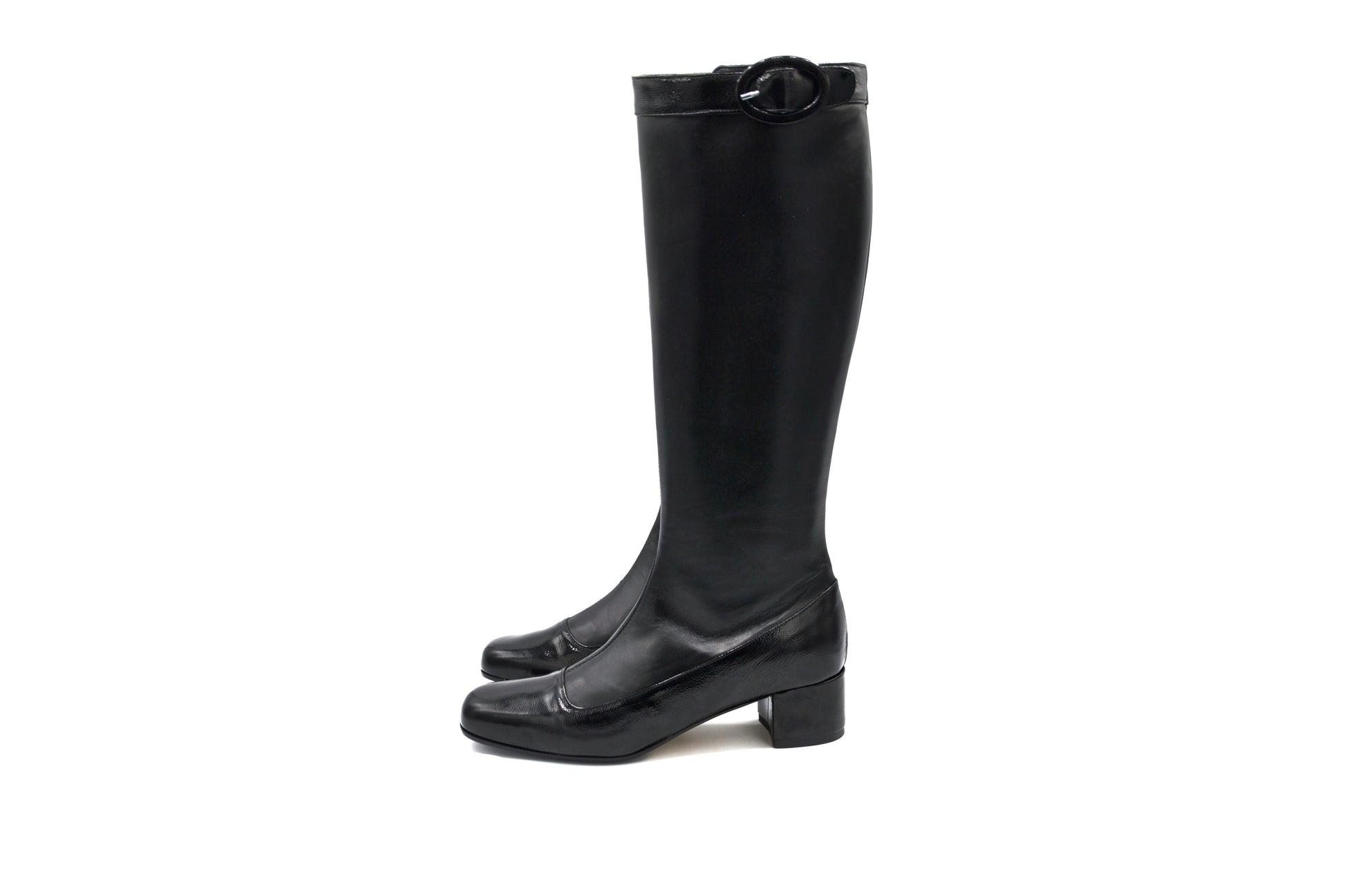 Gli stivali Bice realizzati in pelle in vernice con fibbia al gambale.