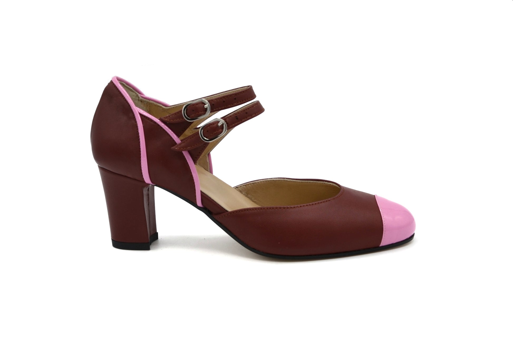 Le décolletés Clarissa realizzate in pelle e pelle in vernice.