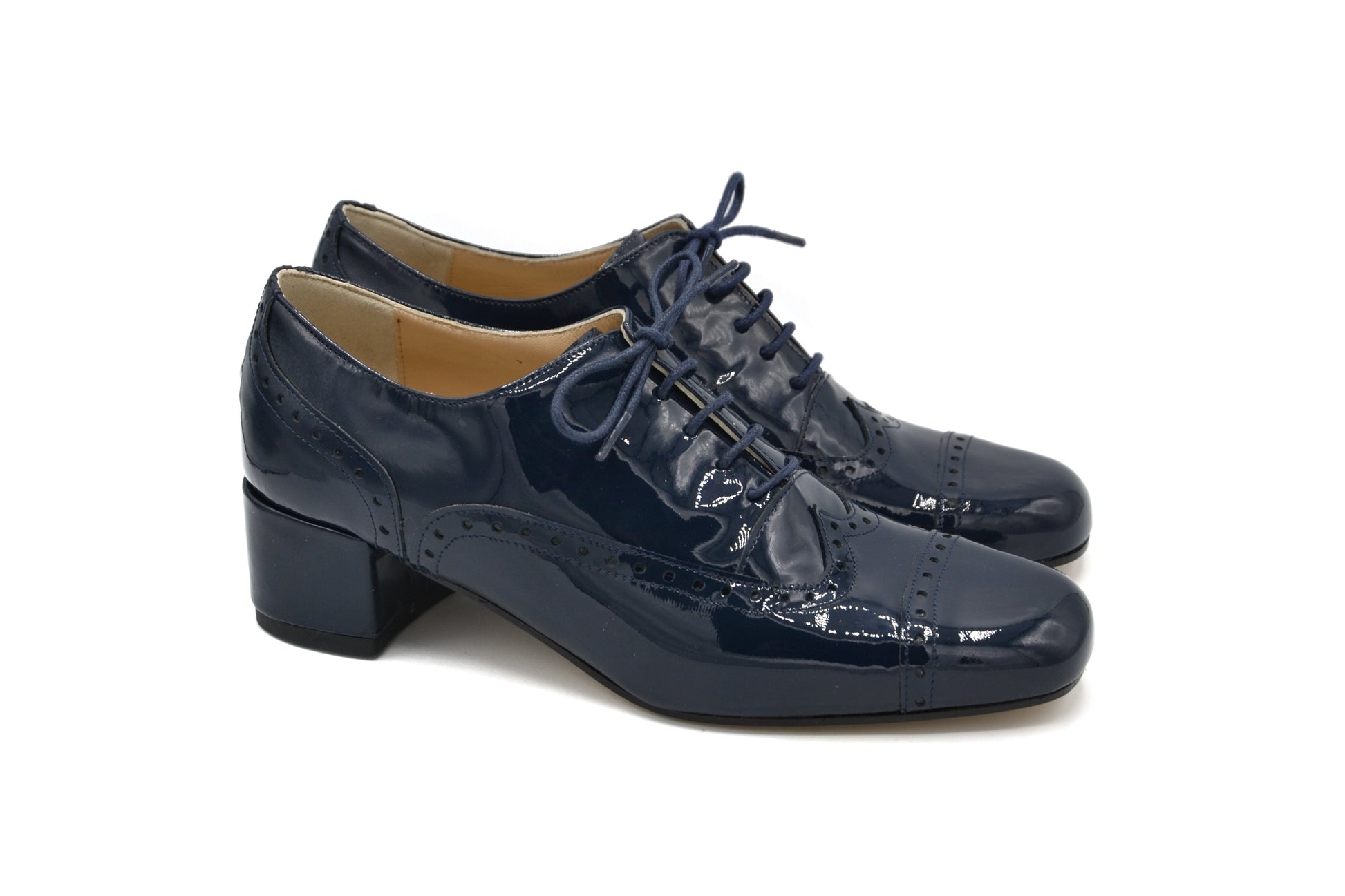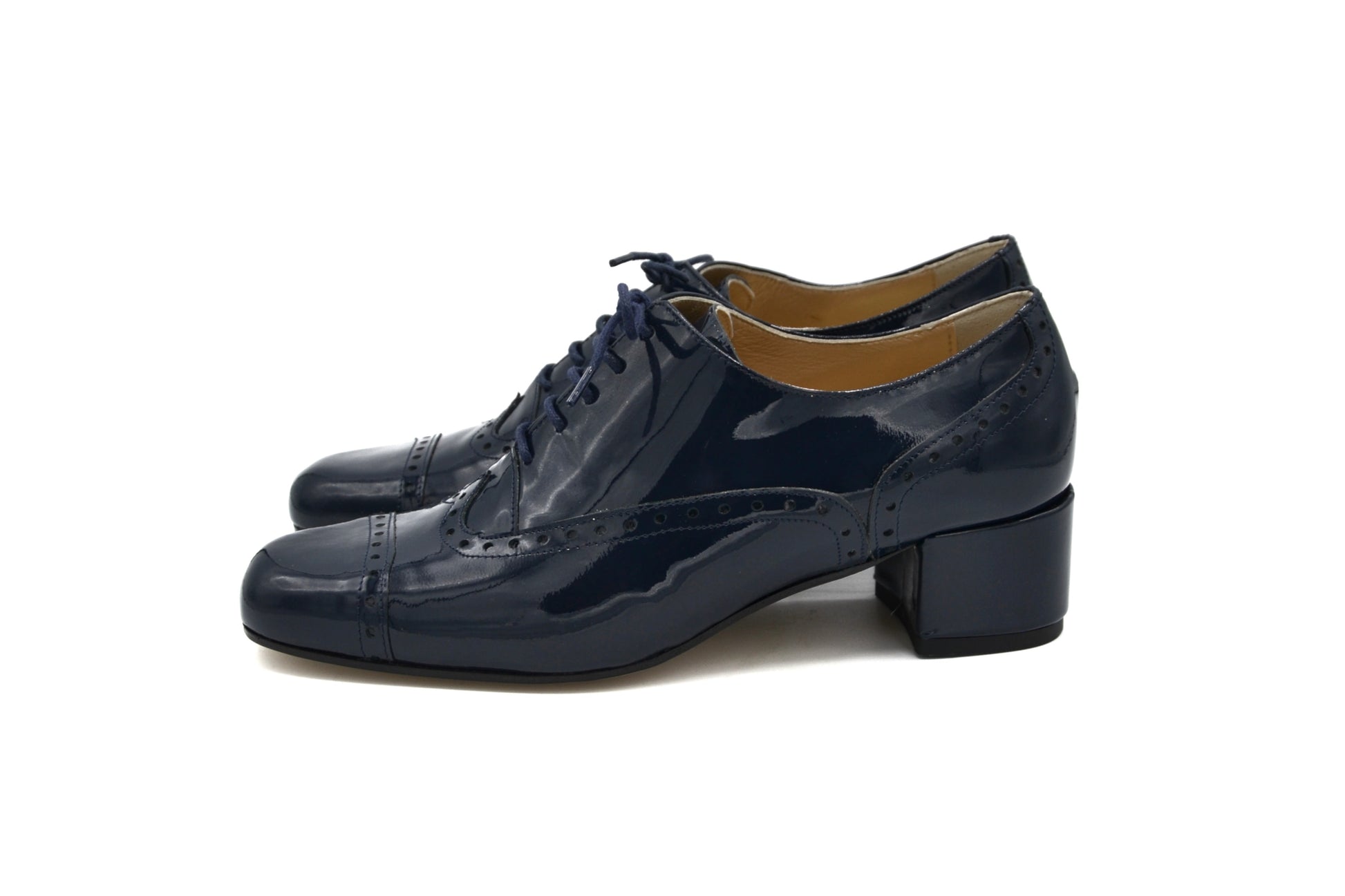 Le francesine Diletta con coda di rondine realizzate in pelle in vernice.