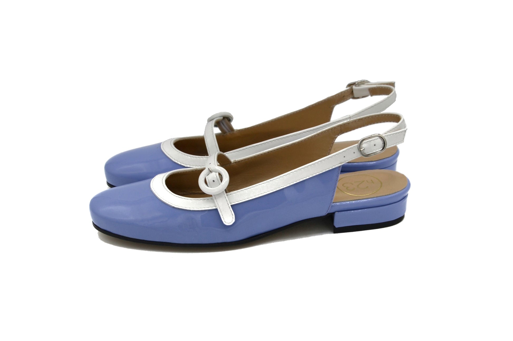 Le décolletés slingback Elina realizzate in pelle in vernice con fibbia ricoperta di pelle in vernice.