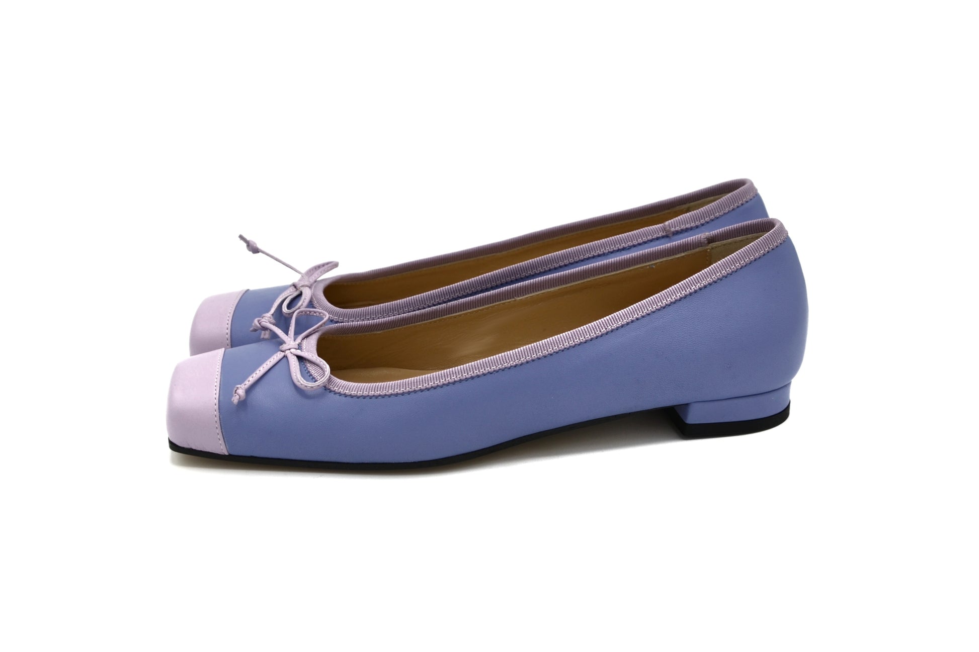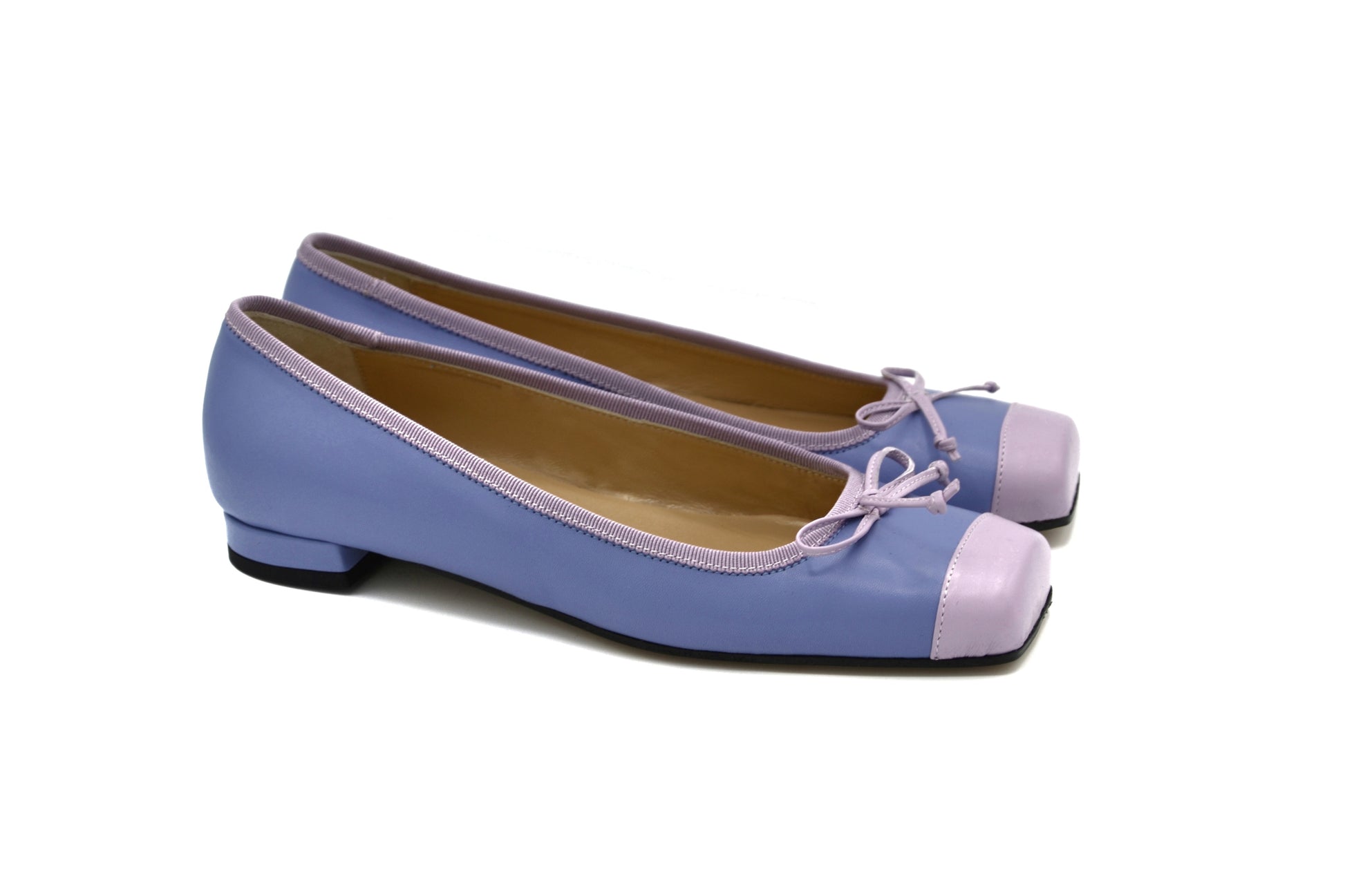 Le ballerine Evelina realizzate in pelle con bordino in gros grain.