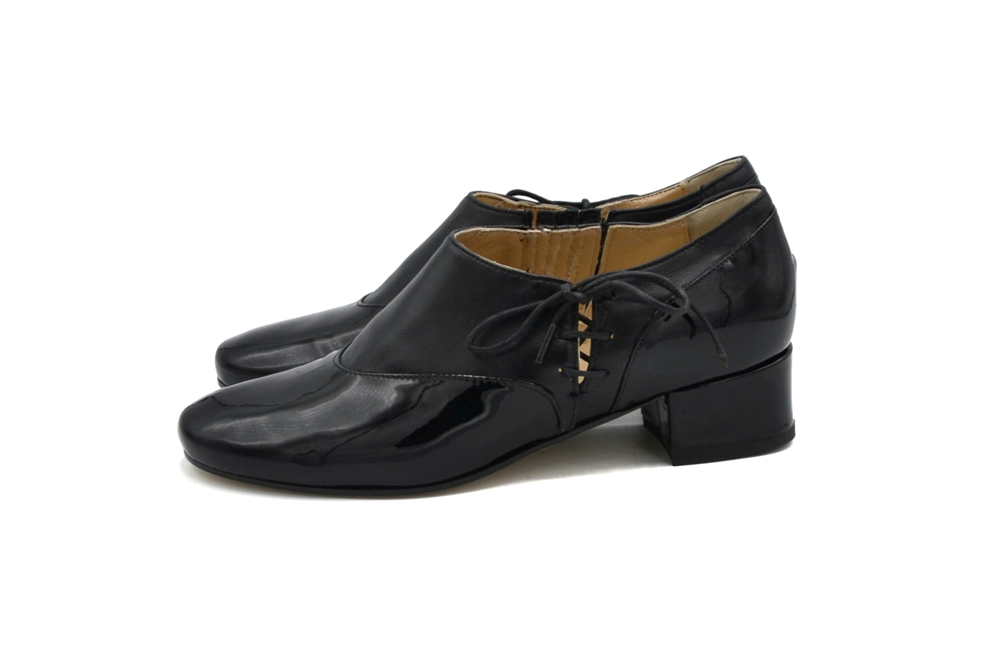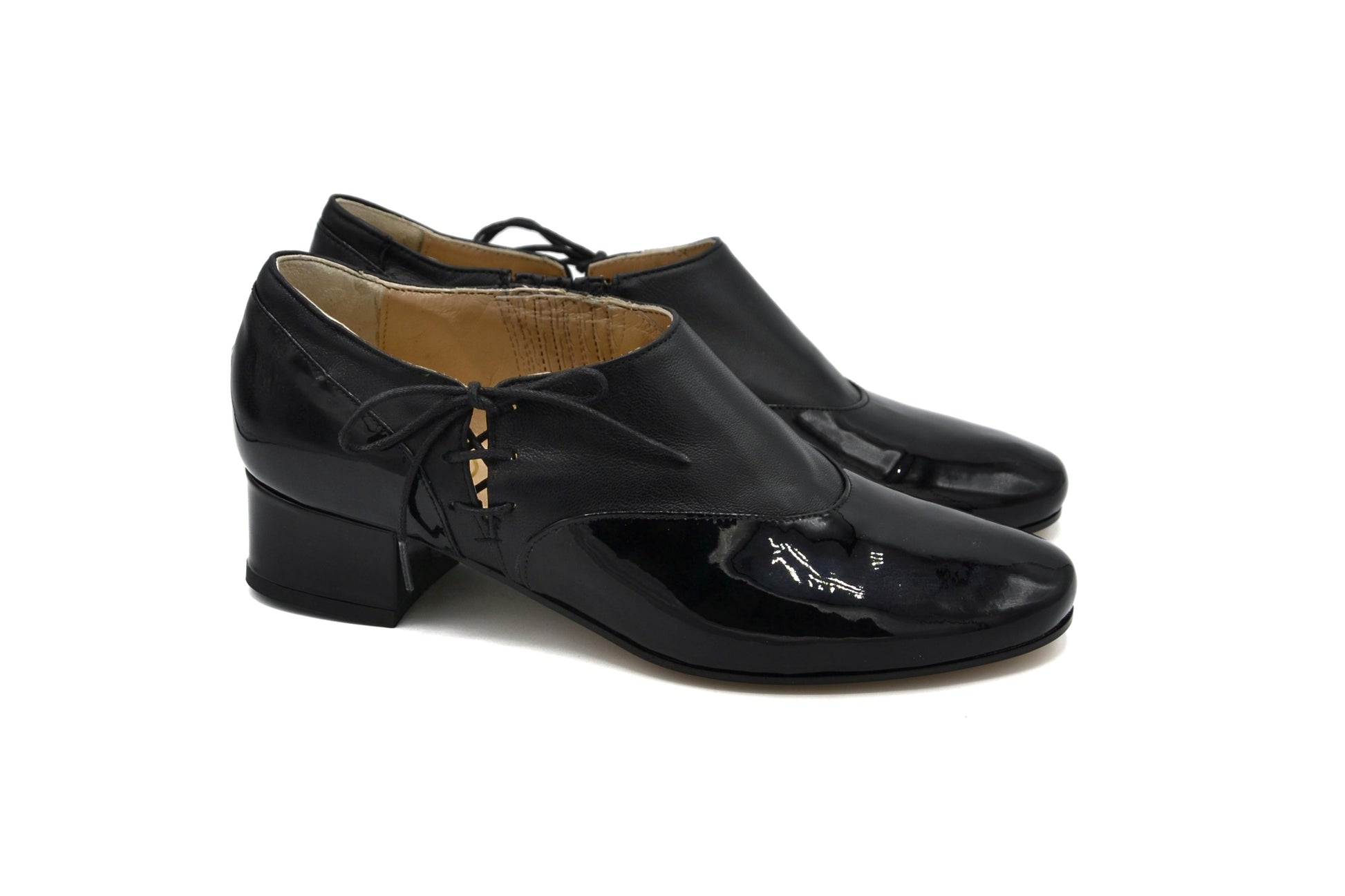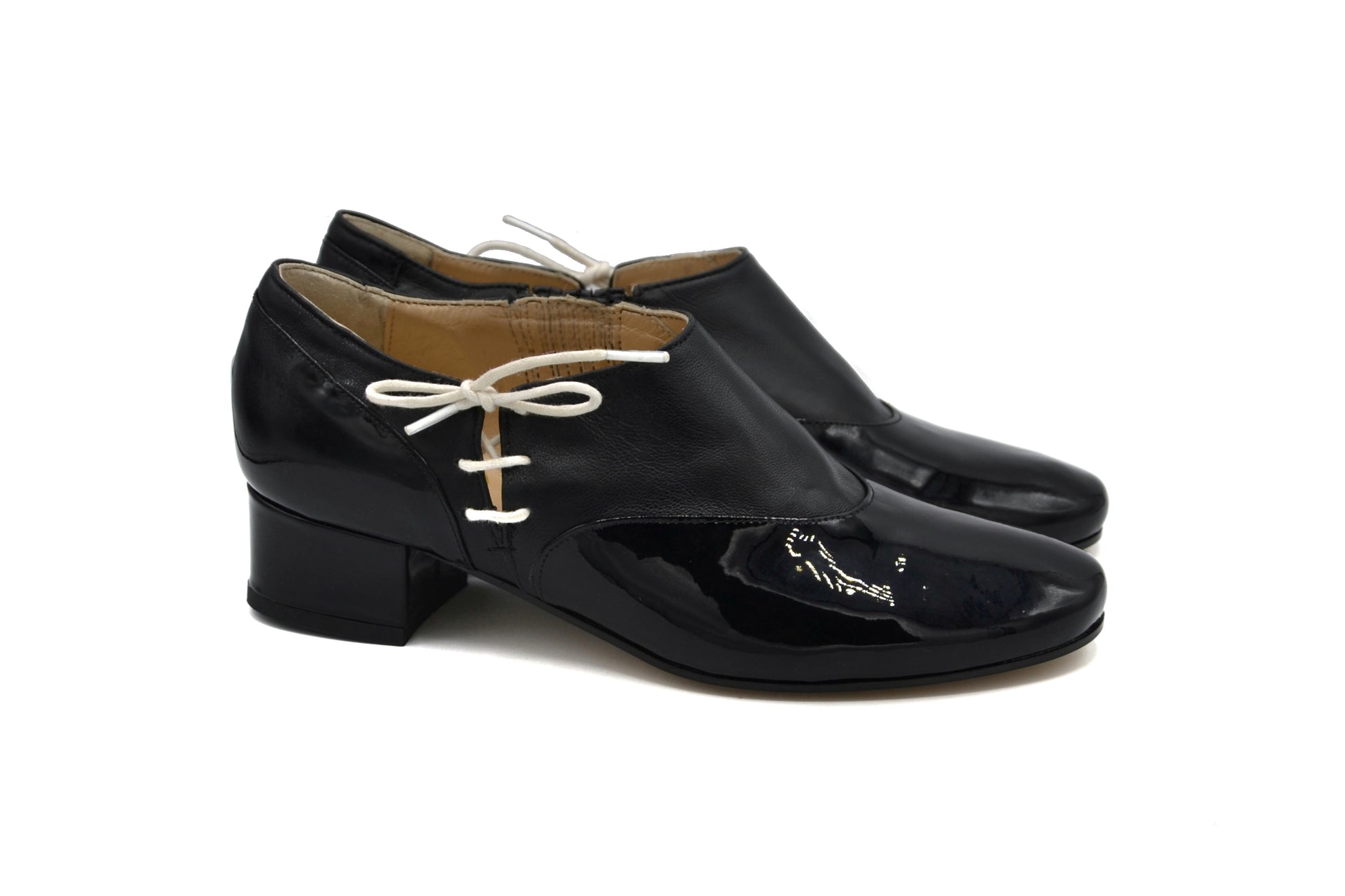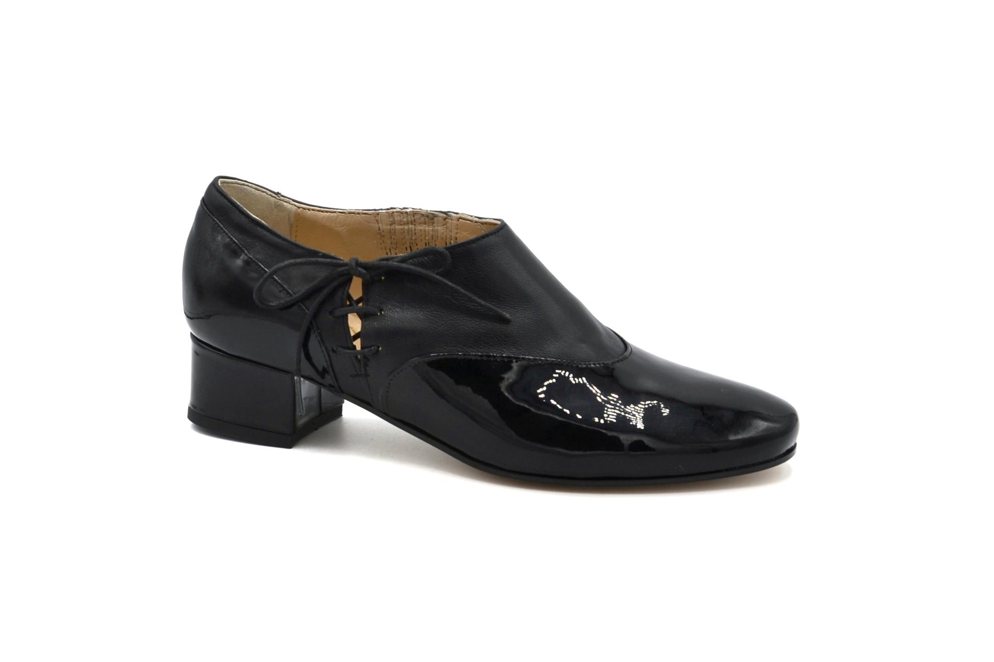 Il modello Matilda con allacciatura laterale realizzate pelle e pelle in vernice.