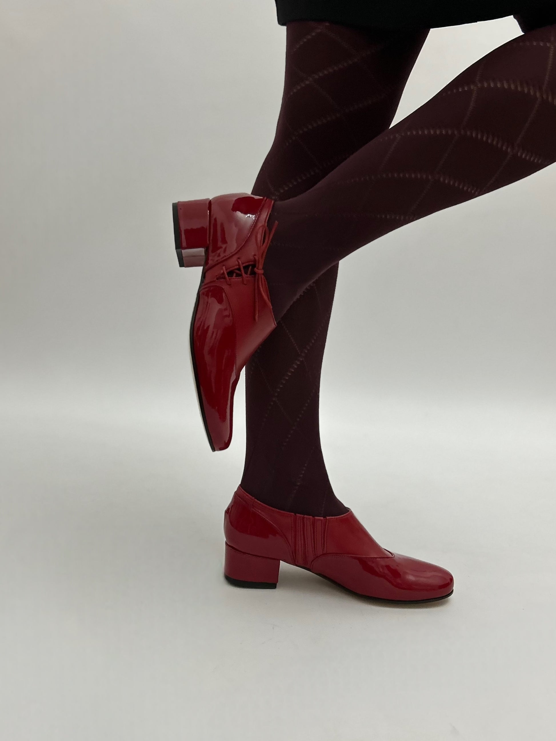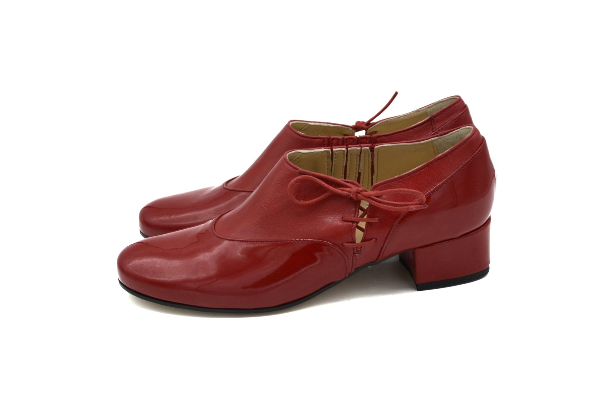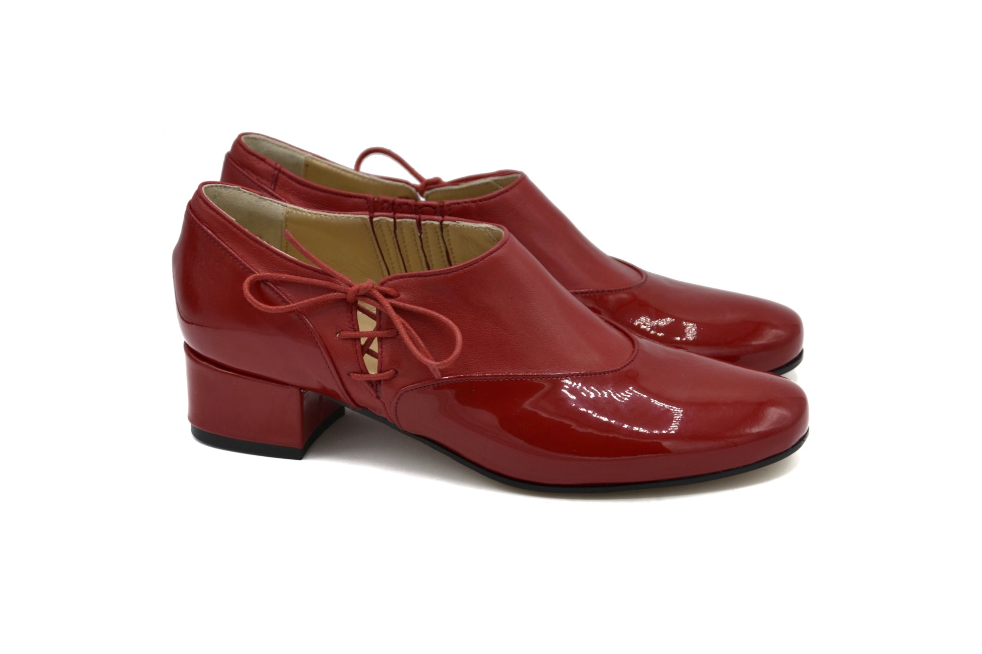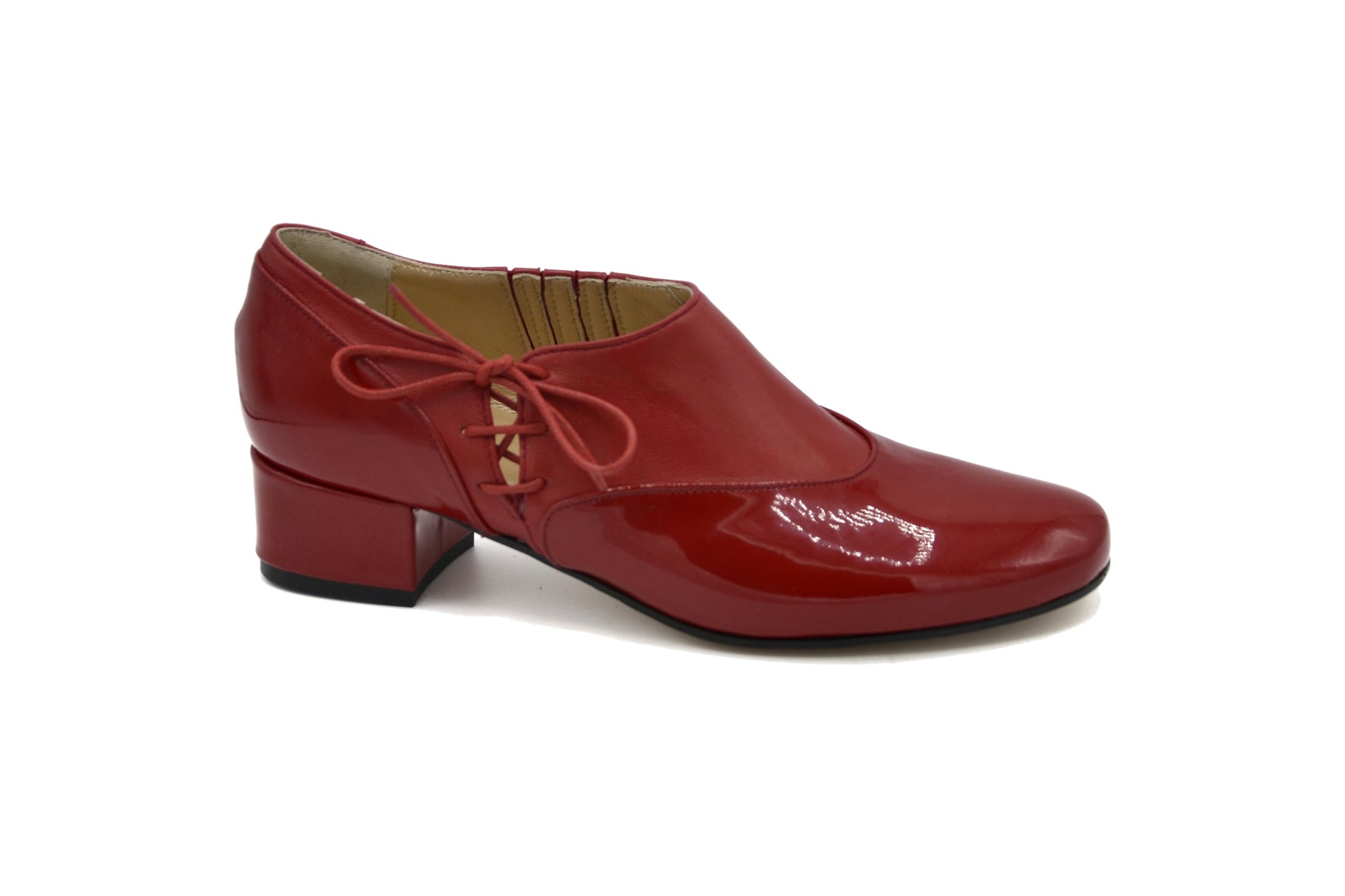 Il modello Matilda con allacciatura laterale realizzate pelle e pelle in vernice.