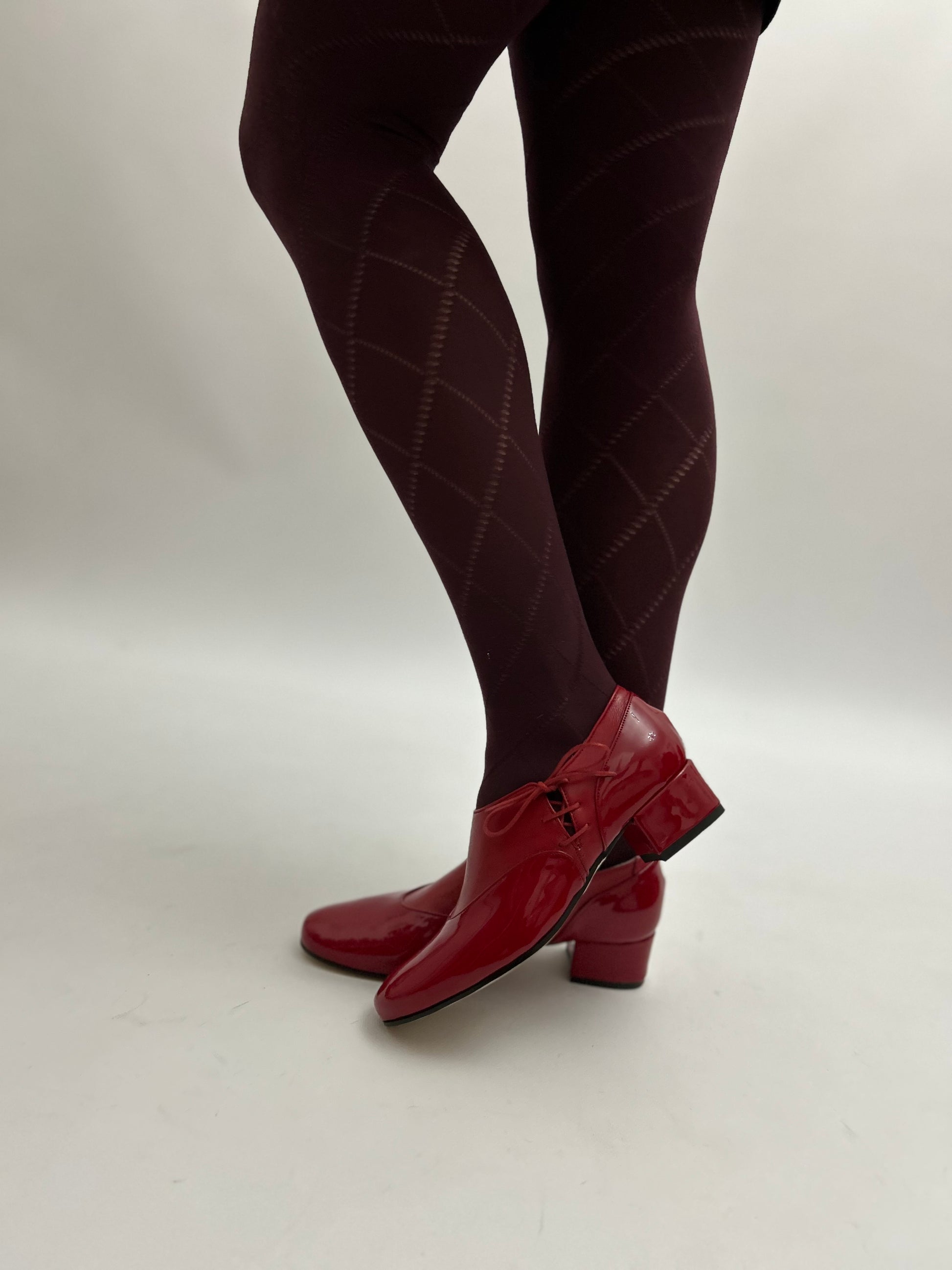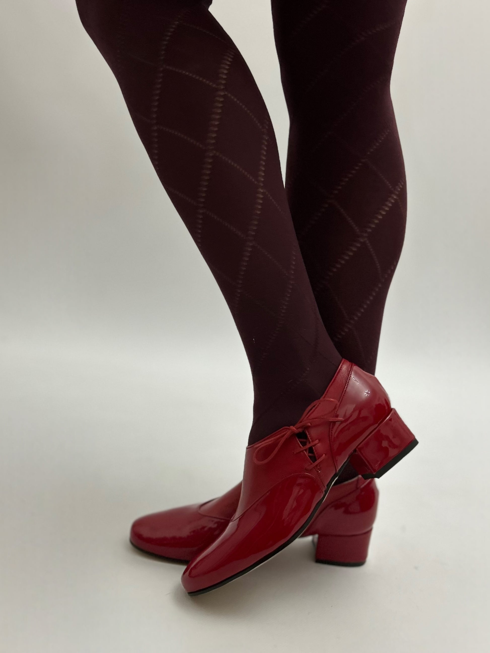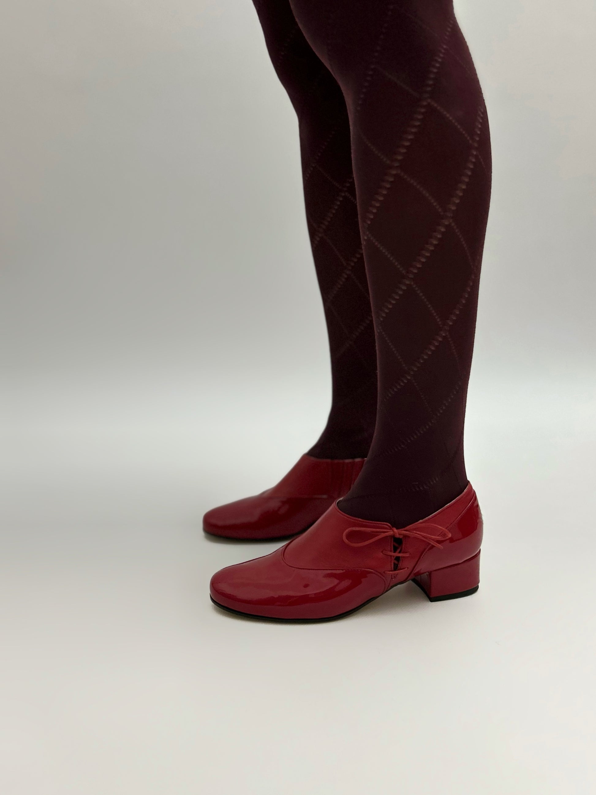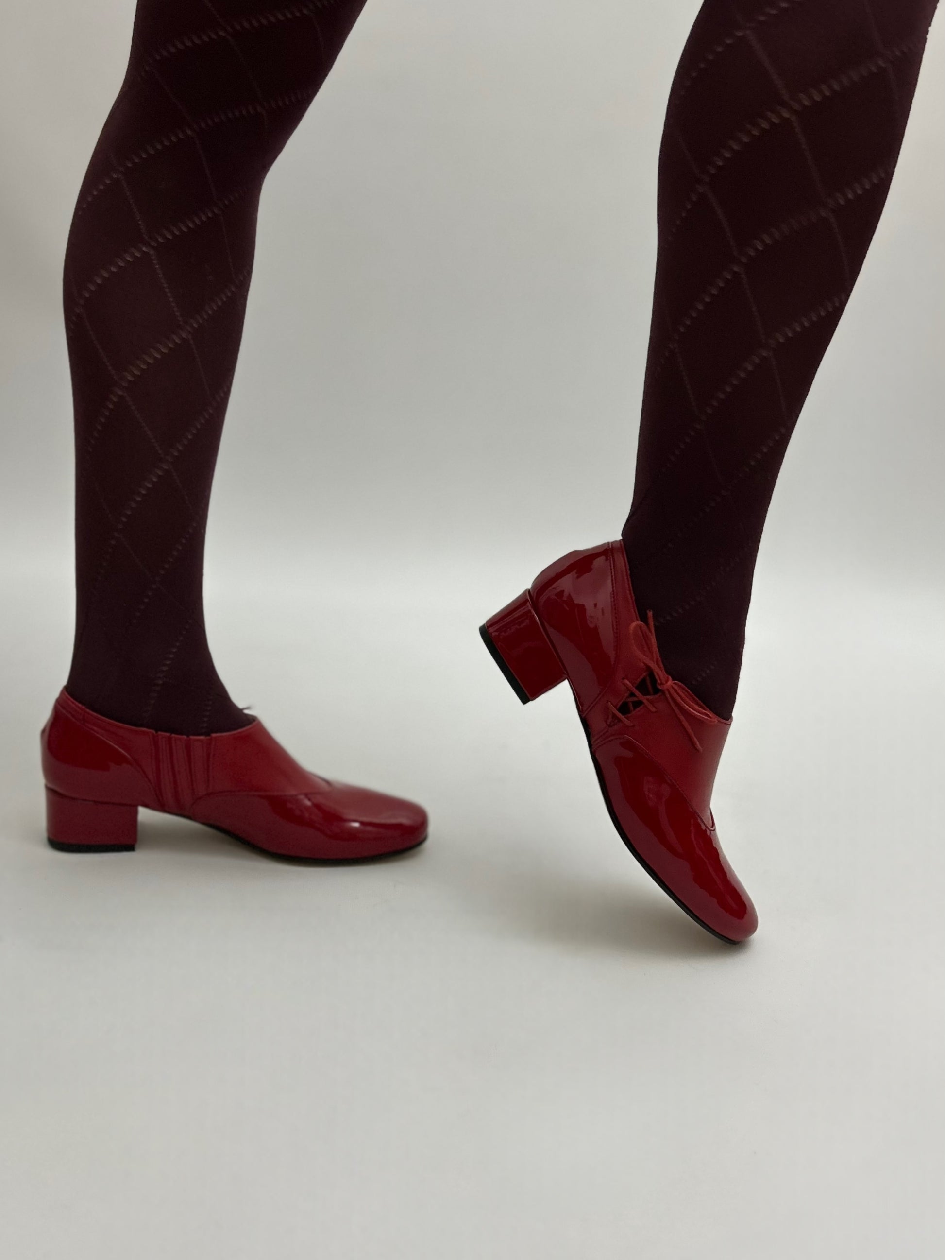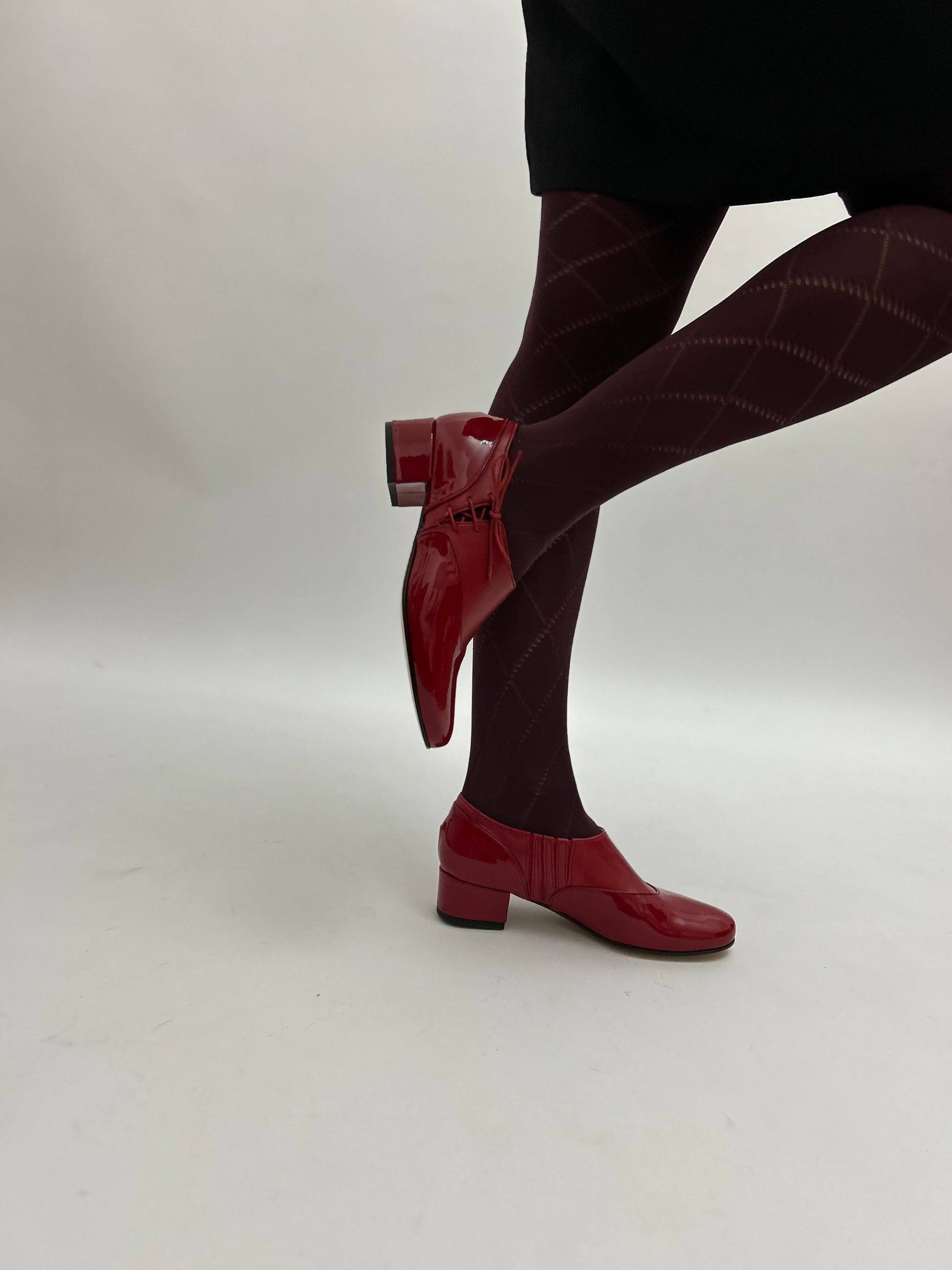 Il modello Matilda con allacciatura laterale realizzate pelle e pelle in vernice.