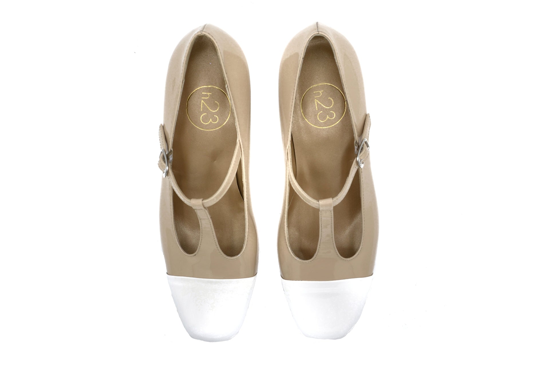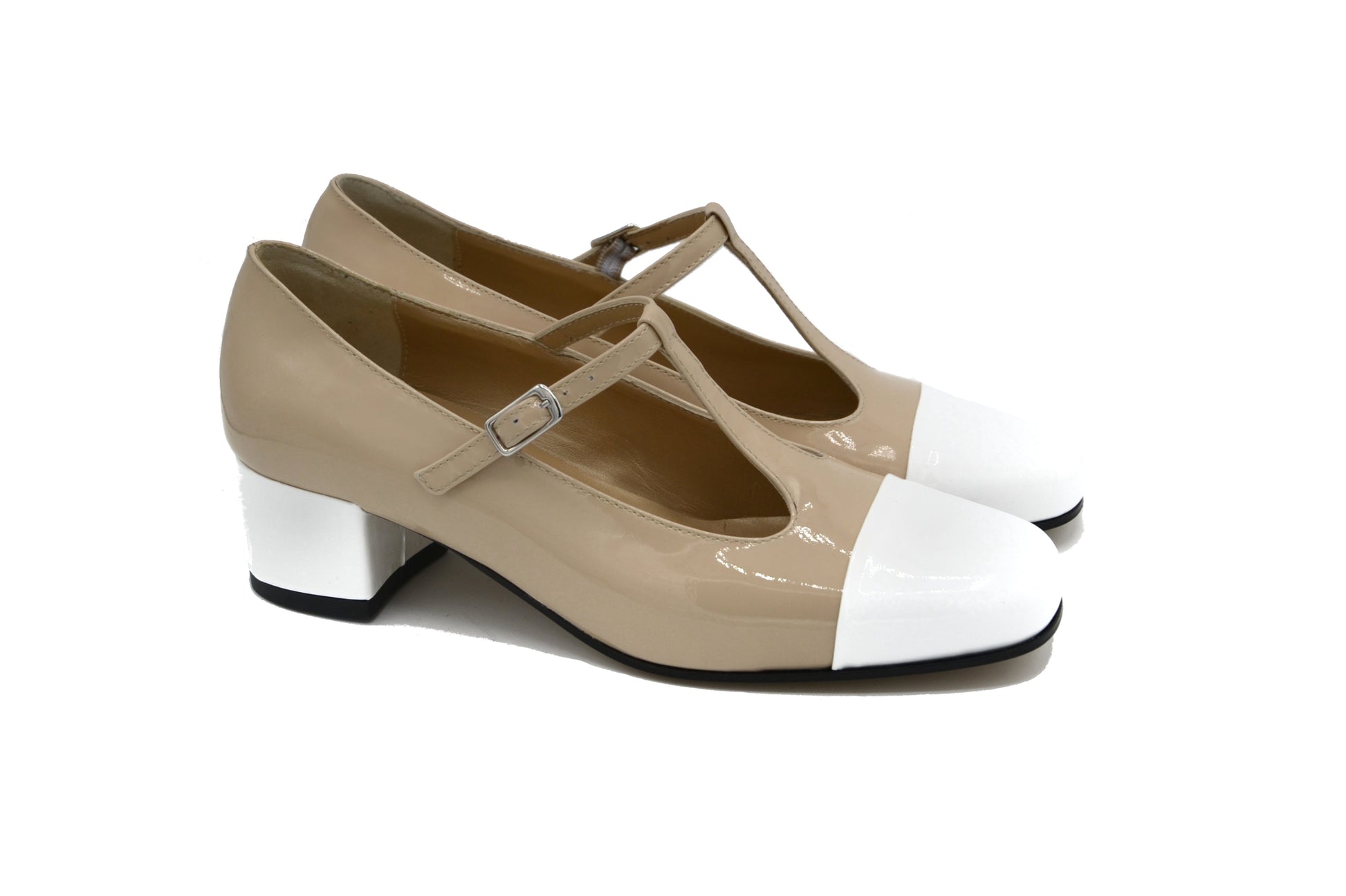 Le décolletés Ottavia realizzate in pelle in vernice con cinturino charleston.