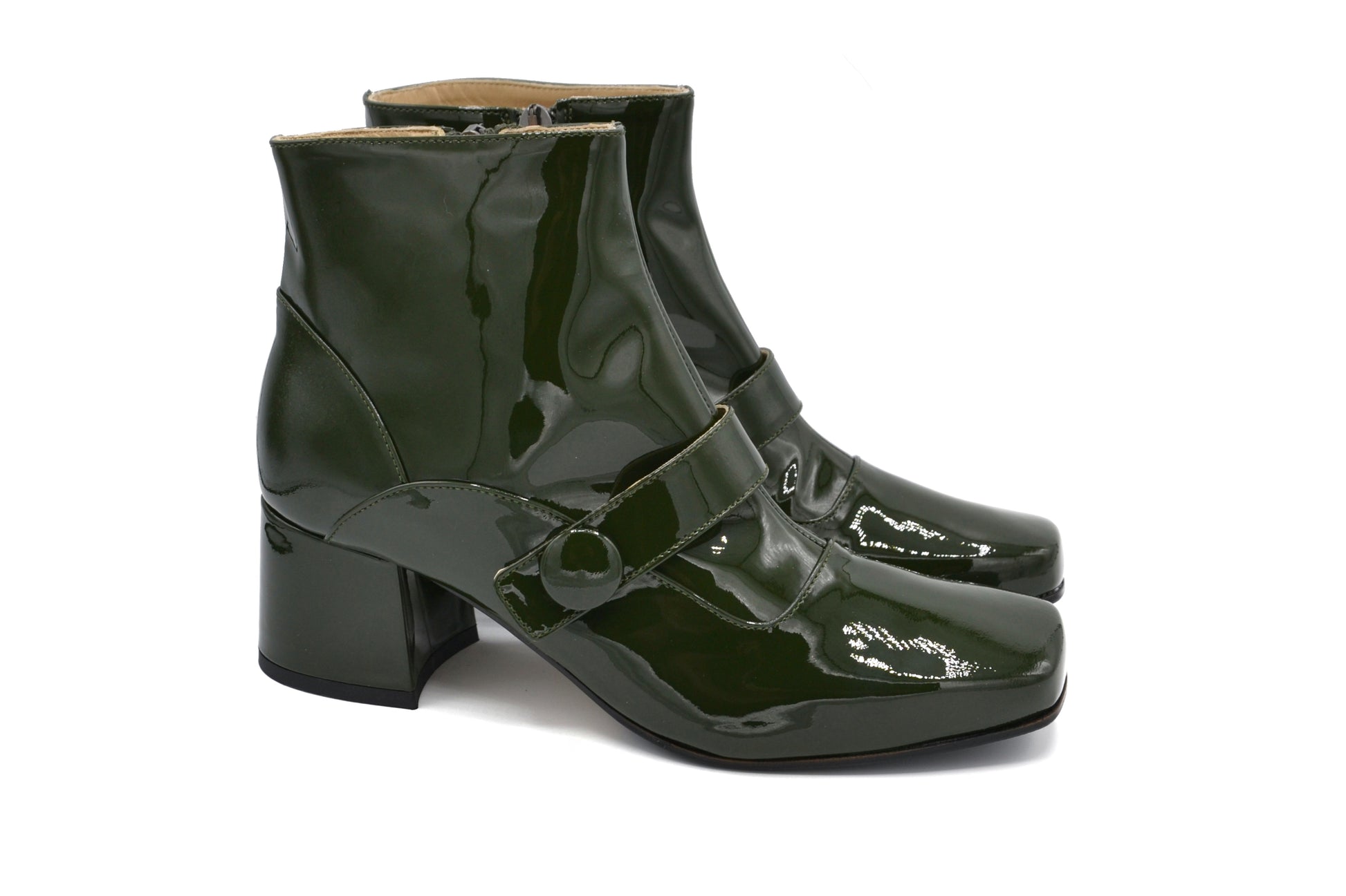 Gli stivaletti Tessa realizzati in pelle in vernice.