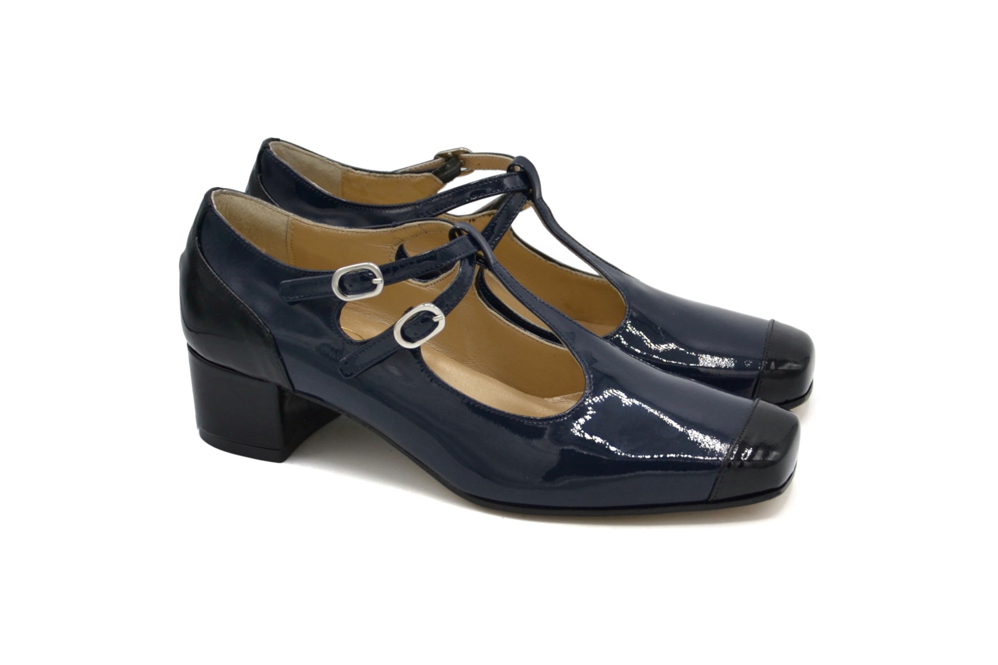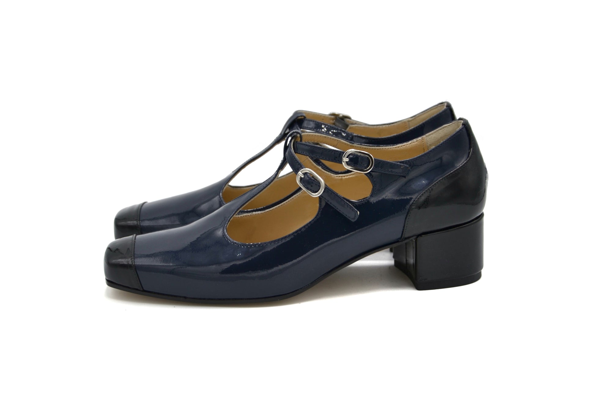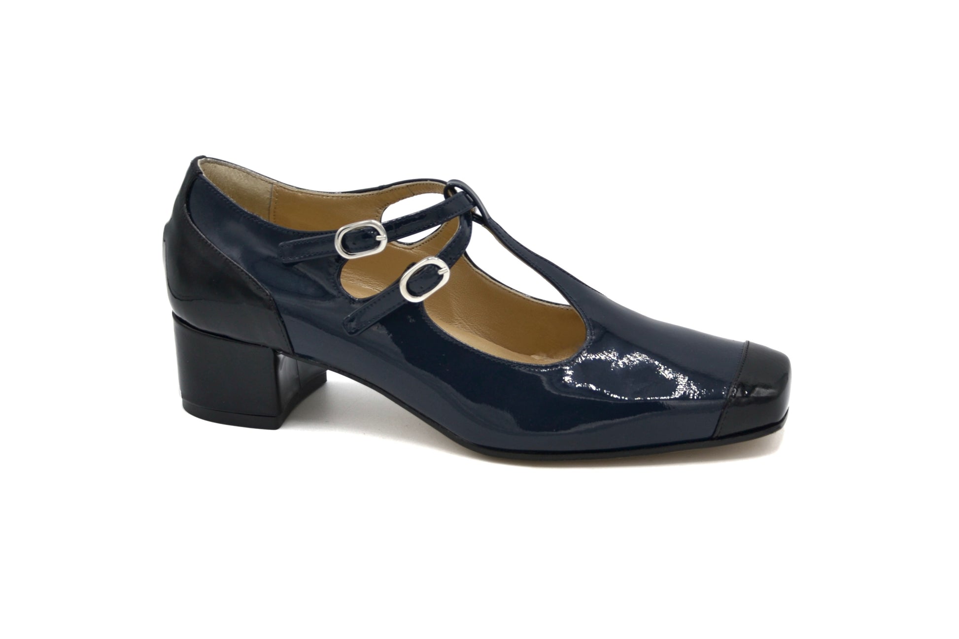 Le décolletés Amelia con doppio cinturino, realizzate in pelle in vernice.