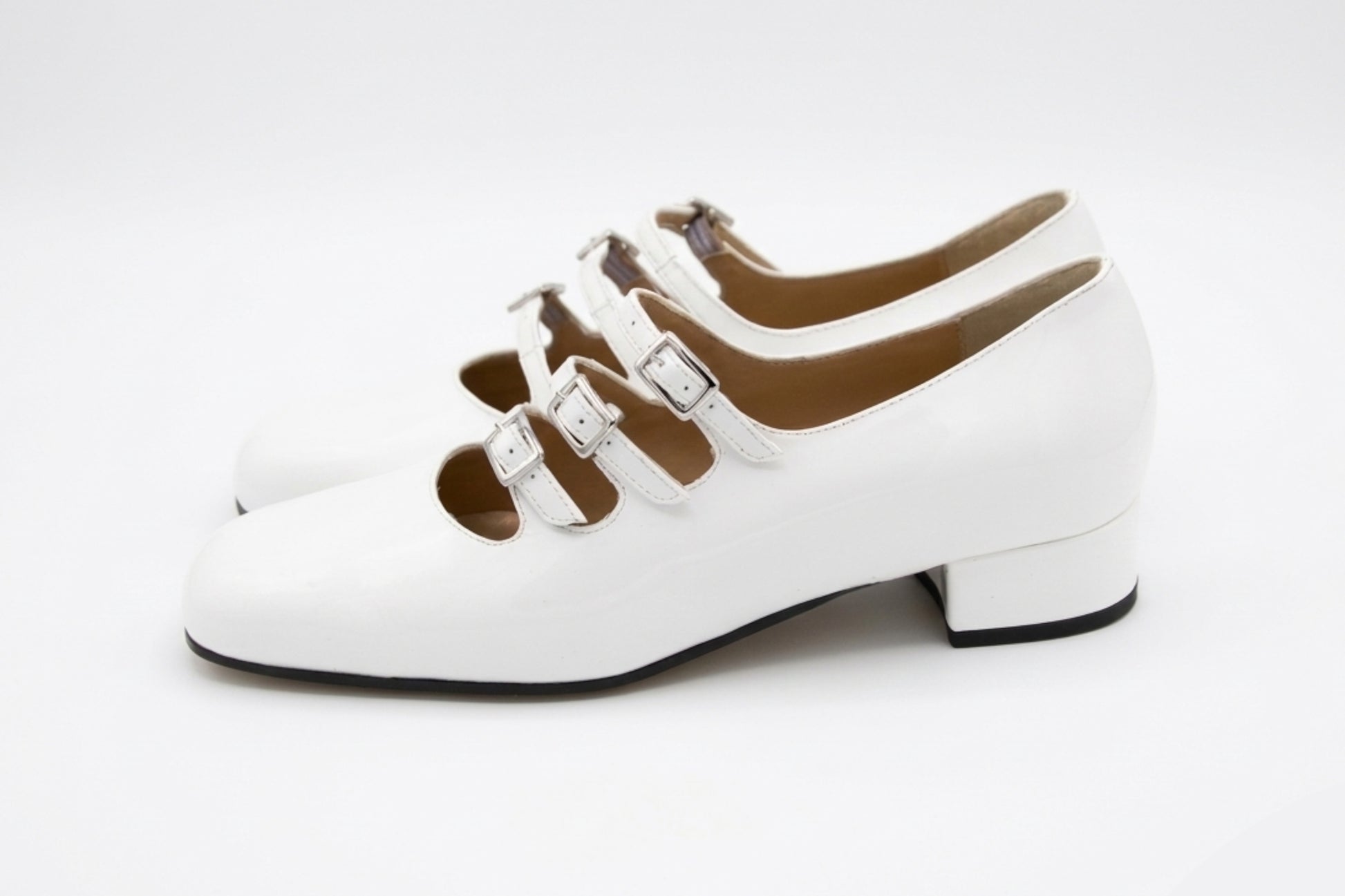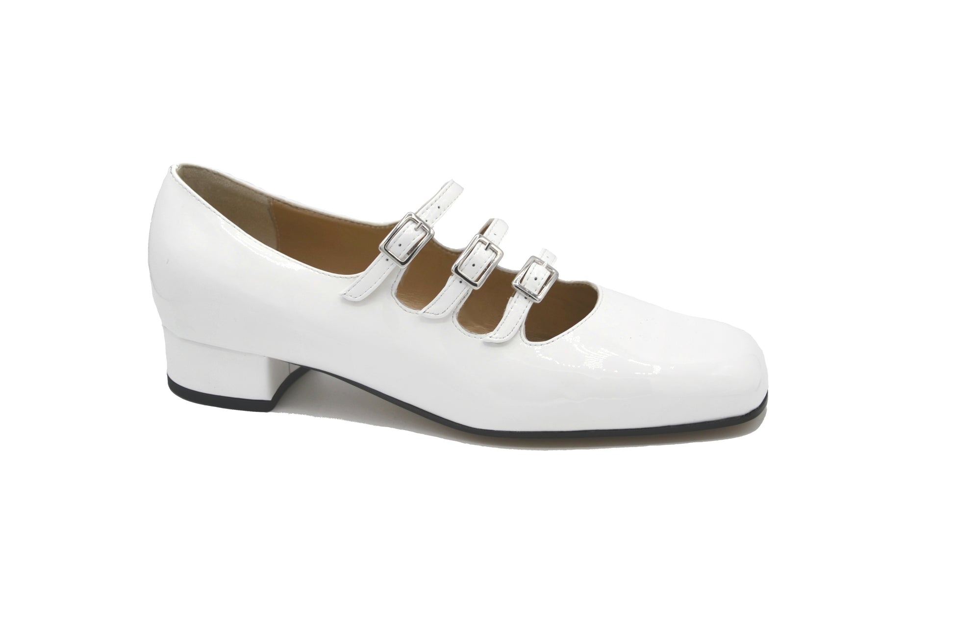- Tacco rivestito in pelle in vernice, altezza 25 mm
