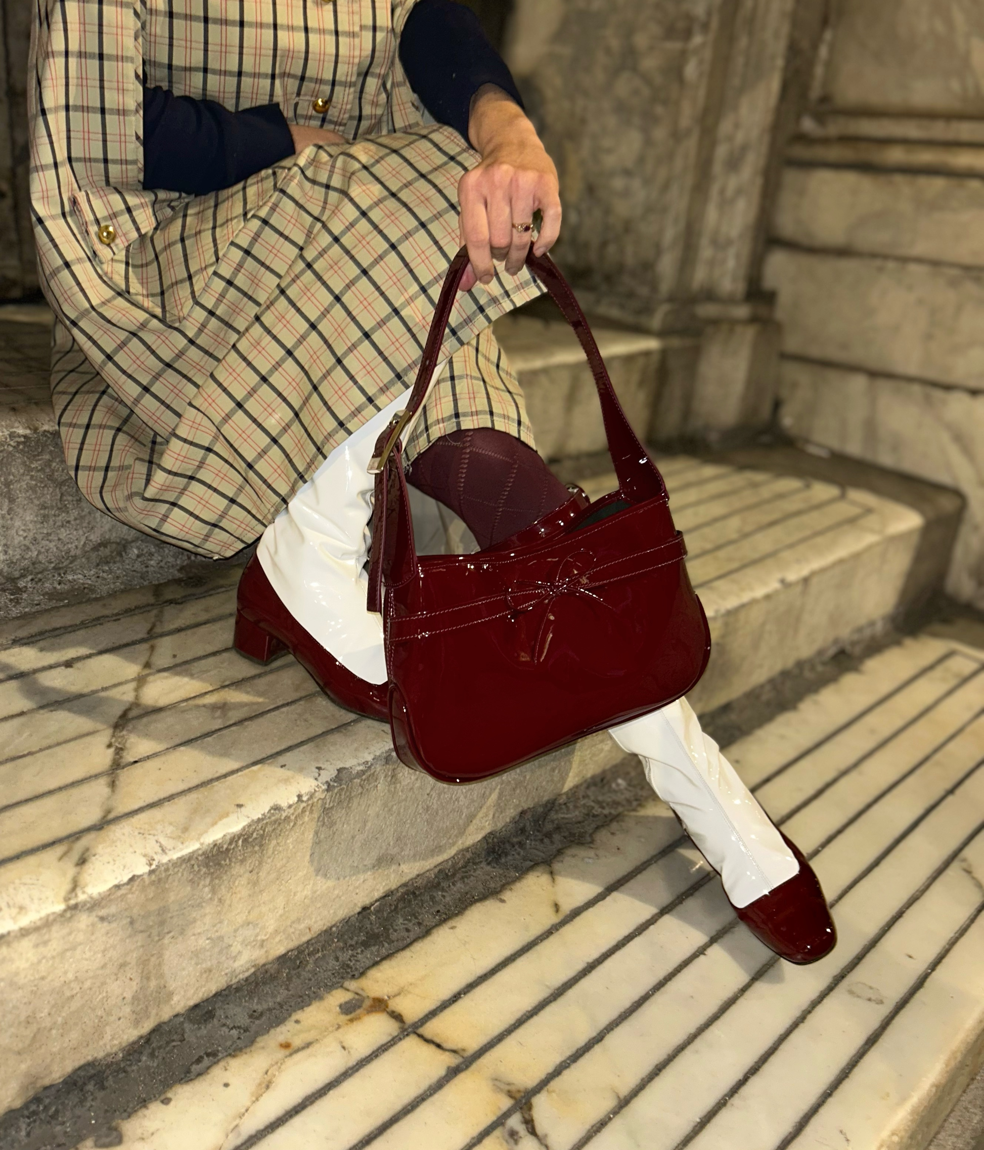 Ines, la nostra nuova borsa a mezzaluna dalla silhouette arrotondata, morbida ma con una linea elegante e pulita una misura perfetta, capace di contenere tutto ciò che vi è prezioso, restando leggera, armoniosa, sempre discreta. La sua ampia luce permette di indossarla con naturalezza , anche avvolte in un cappotto nelle mattine d’inverno. La chiusura a bottone è semplice, essenziale E poi c’è lui… il fiocco, la firma inconfondibile di Ines.