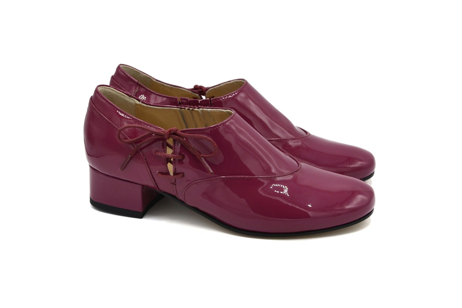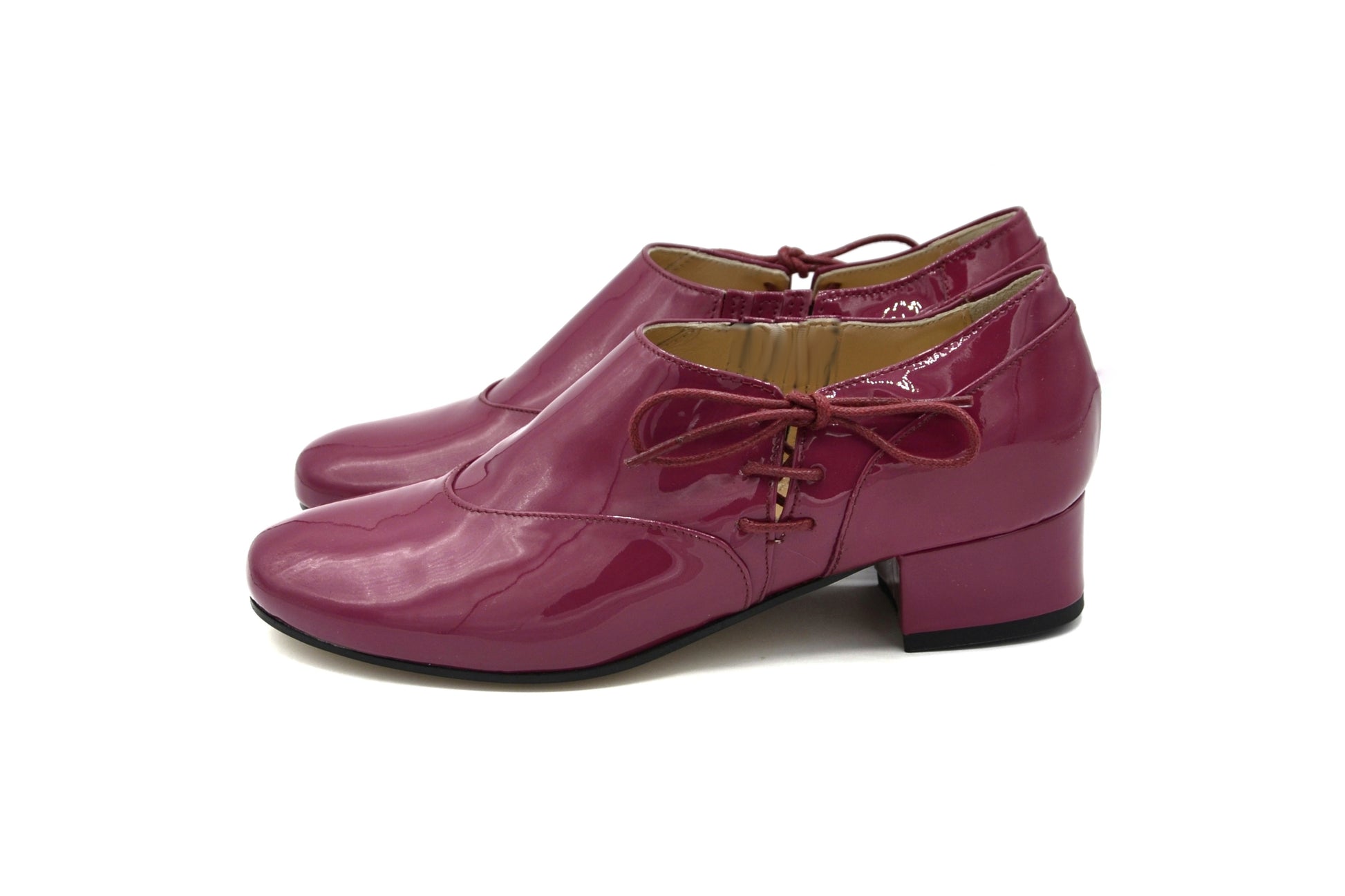Il modello Matilda con allacciatura laterale realizzate pelle in vernice.