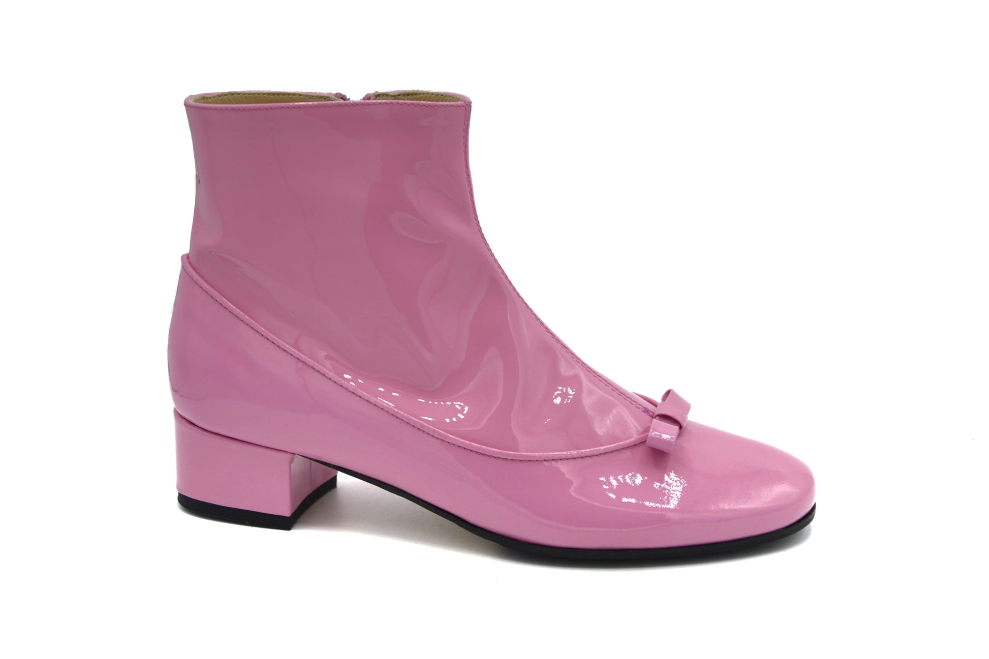 Gli stivaletti Susanna realizzati in pelle in vernice con fiocco in pelle in vernice.